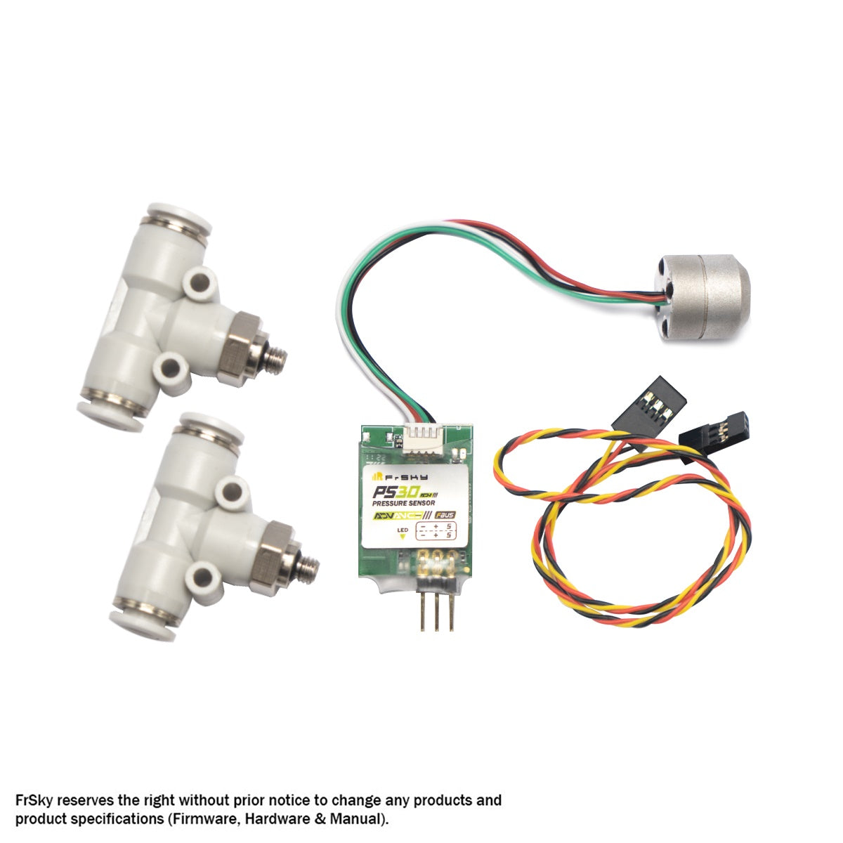 The PS30 ADV pressure sensor can be used to measure the air pressure on your model’s air system. Having the air pressure telemetry on the radio gives you the flexibility to set alarms, and trigger actions that can be done based on the air pressure information received from the sensor, such as alarms for pressure drops, lowering the retracts if the lower threshold has been passed, etc.